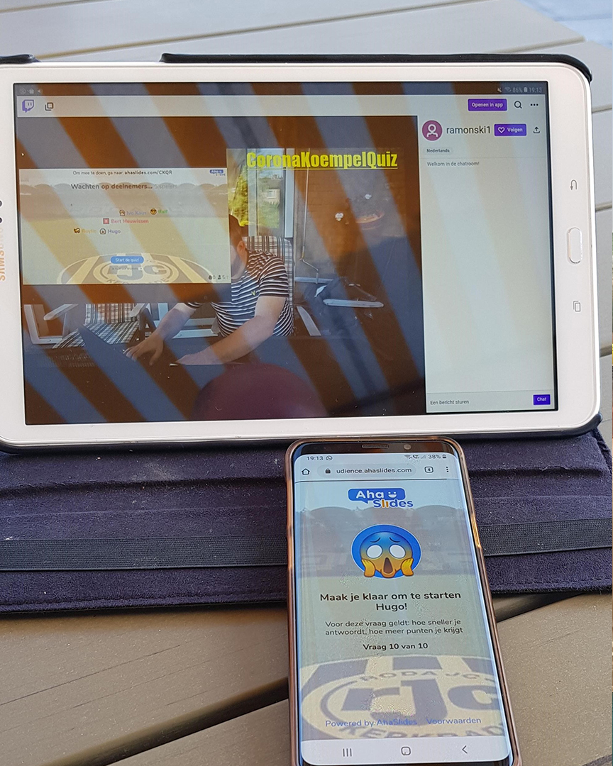 Je kunt natuurlijk ook met je mede koempels 1 scherm aan zetten met de livestream en ieder apart op de telefoon de vragen beantwoorden om uit te maken wie nu eigenlijk het meeste van onze club weet.